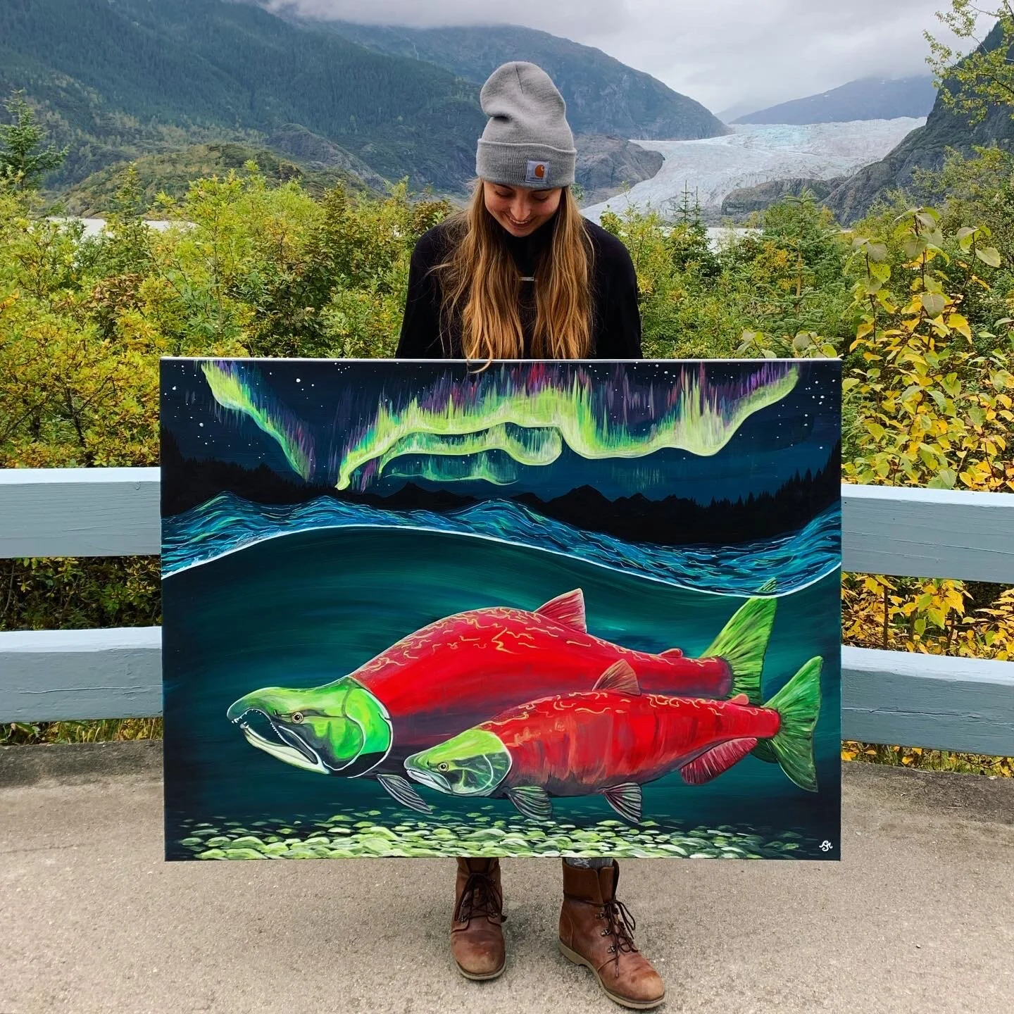 SOLD-Sockeye Salmon Under the Northern Lights.