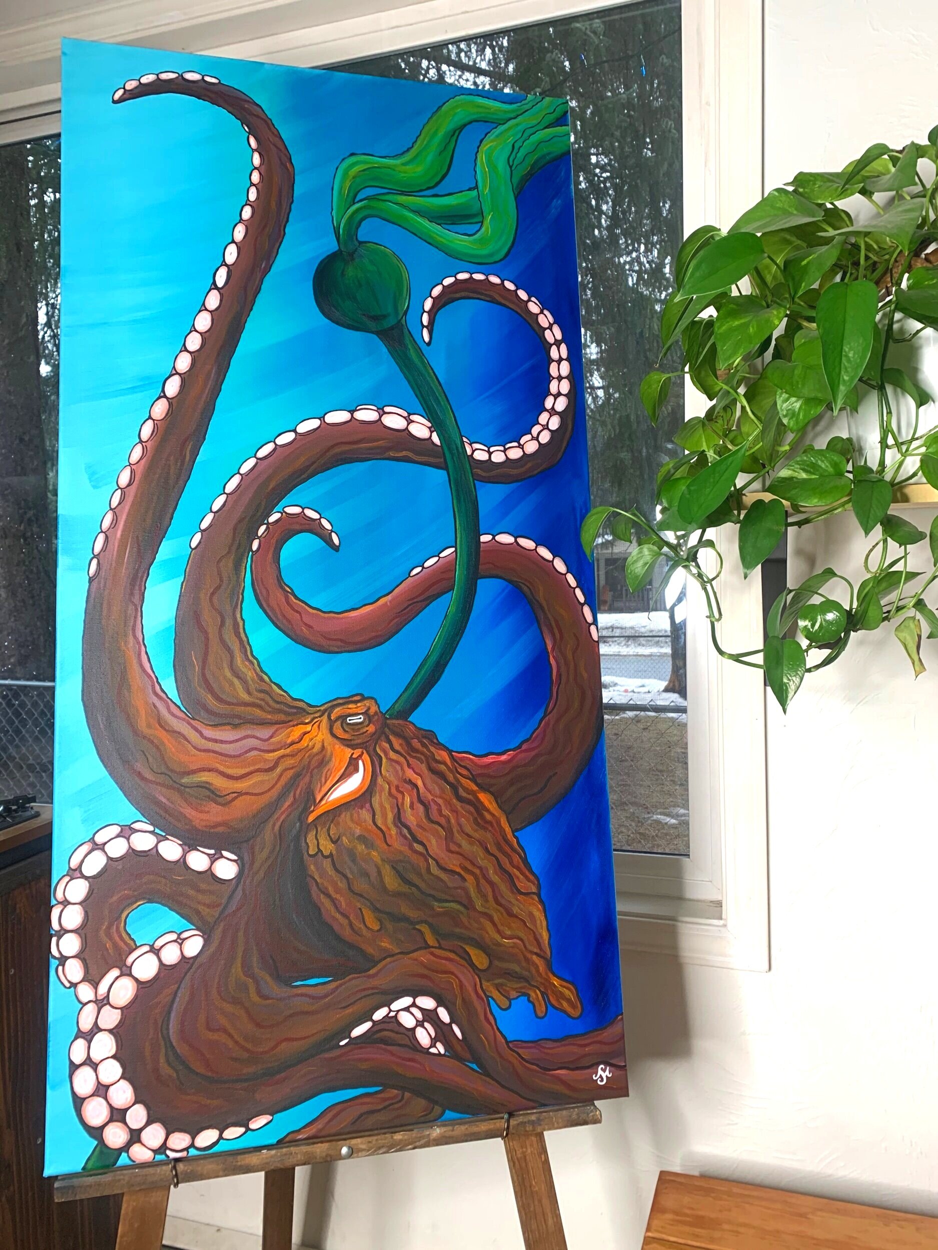Image 1 of 2 Image 2 of 2 Giant Pacific Octopus Sale Price: $500.00 Original Price: $680.00 sold out This original acrylic painting is of a Giant Pacific Octopus and is 24”x48”. Sold Out Added! This original acrylic painting is of a Giant Pacific Octopus and is 24”x48”.